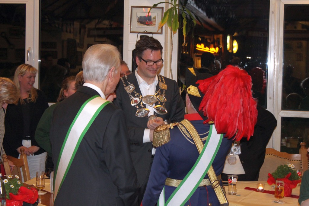 Von Ehrenbürgermeister Karl Heinz Mesterom wurde Pastor Schürkens nun das Königssilber abgenommen und an Schützenkönig Hartmut Hommen übergeben.