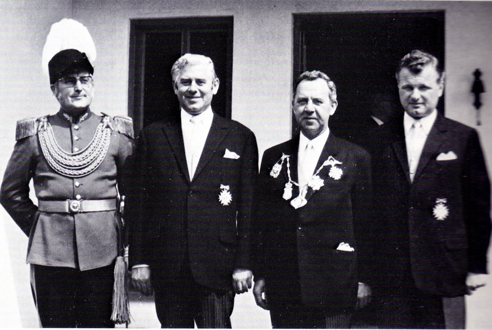 1965 Schützenkönig Kornelius Willemsen mit den Ministern Willi Ensch und Konstantin Moch