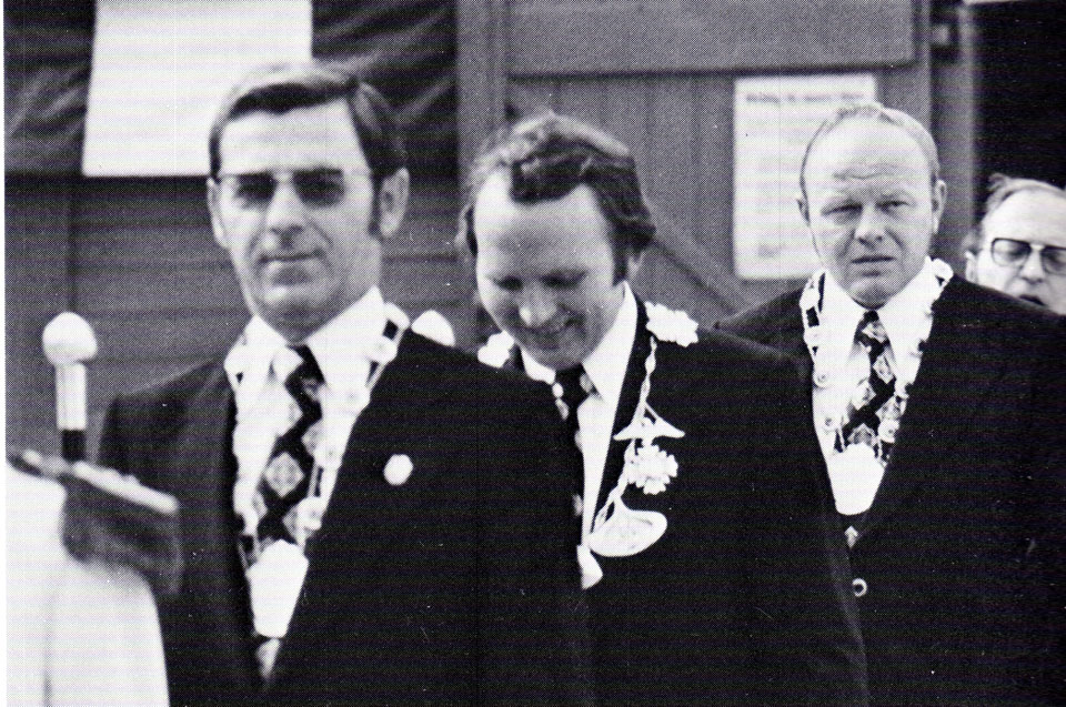 1977 Schützenkönig Walter Schwägerl mit den Ministern Willi Heines und Karl Heinz Mesterom
