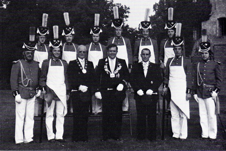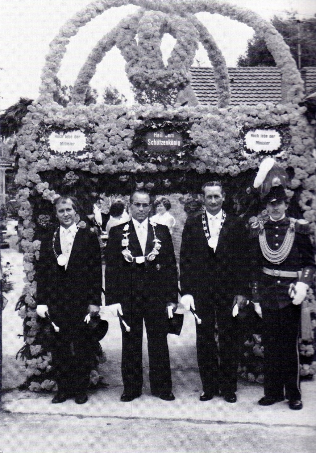 1975 Schützenkönig Heinrich Giesen mit den Ministern Erich Schmitz und Willi Pielen