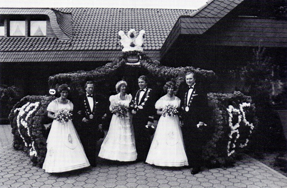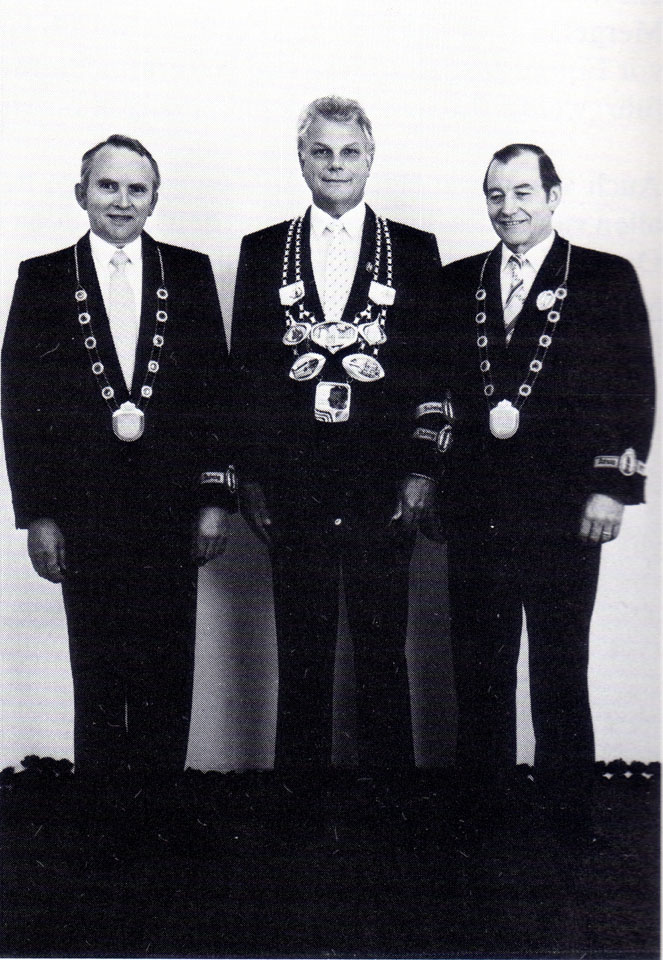 1987 Schützenkönig Karl Heinz Mesterom mit den Ministern Heinrich Giessen und Walter Schwägerl
