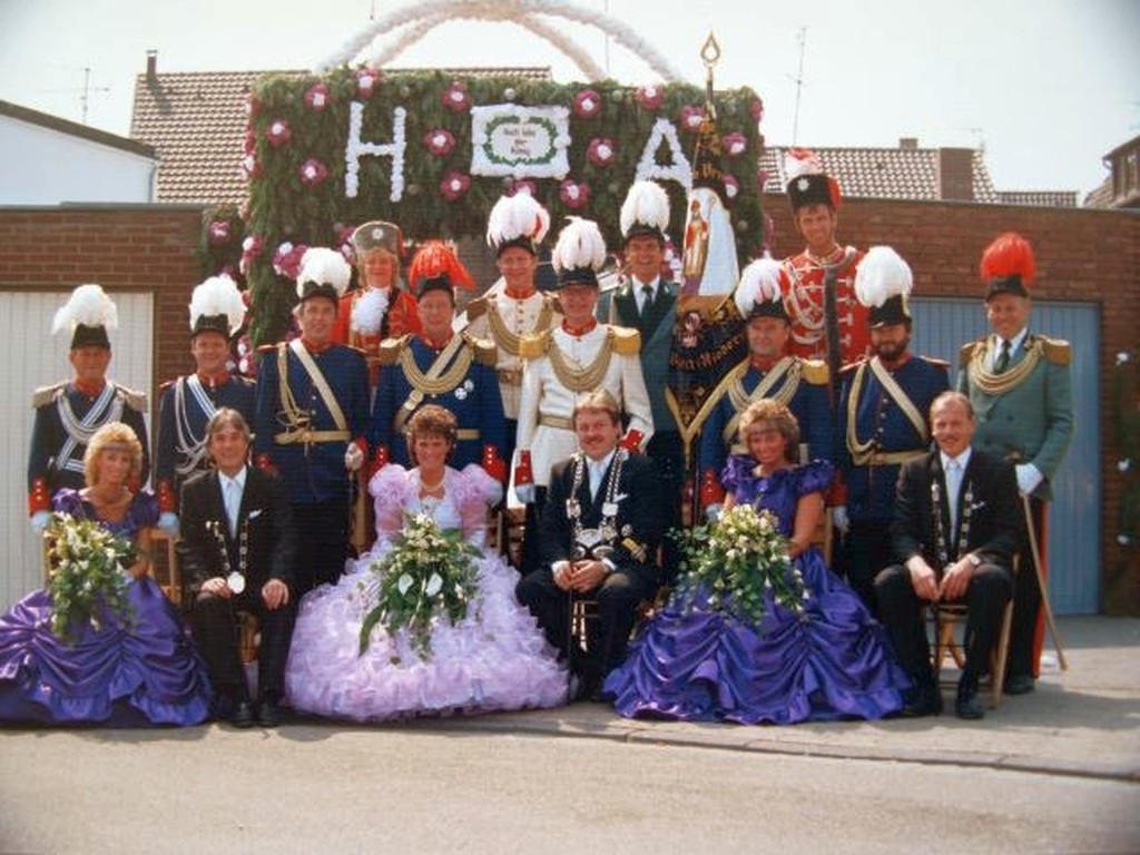 1989 Schützenkönig Helmut van de Flierdt mit den Ministern Klaus Schmitz und Michael Tönnissen