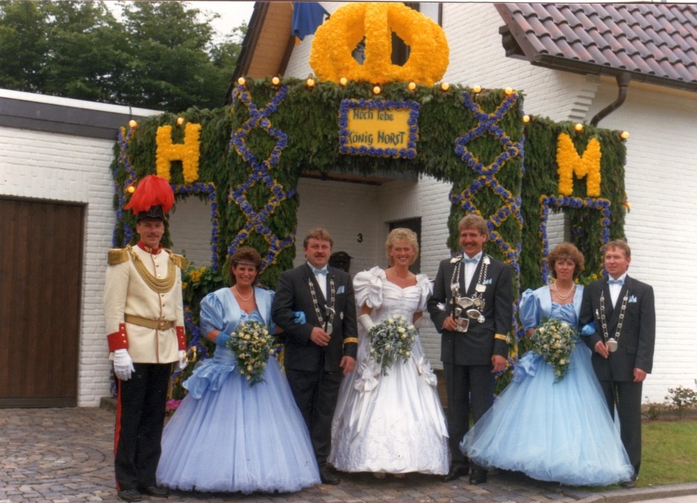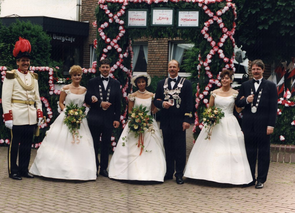1993 Schützenkönig Thomas Engels mit den Ministern Hartmut Schoen und Frank Nasarzewski