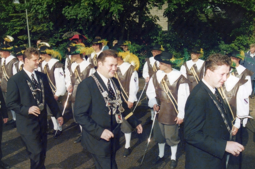 1995 Schützenkönig Stephan Terkatz mit den Ministern Frank Simons und Ralph Nethen