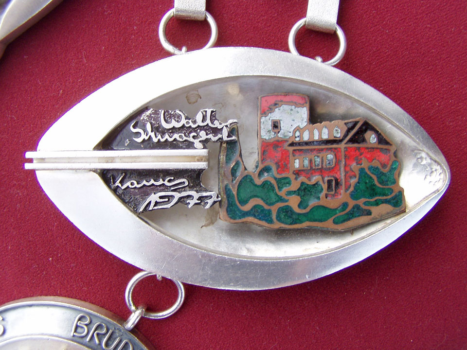 Genau wie zu Zeiten der Jülich’schen Herrschaft ist auch heute noch die Burg Brüggen ein Mittelpunkt der Gemeinde. Die Burg, damals Sitz der Amtsverwaltung, ist heute Bezugspunkt des Fremdenverkehrsortes Brüggen. Verständlich, dass auch sie an unserem Königssilber nicht fehlen darf.