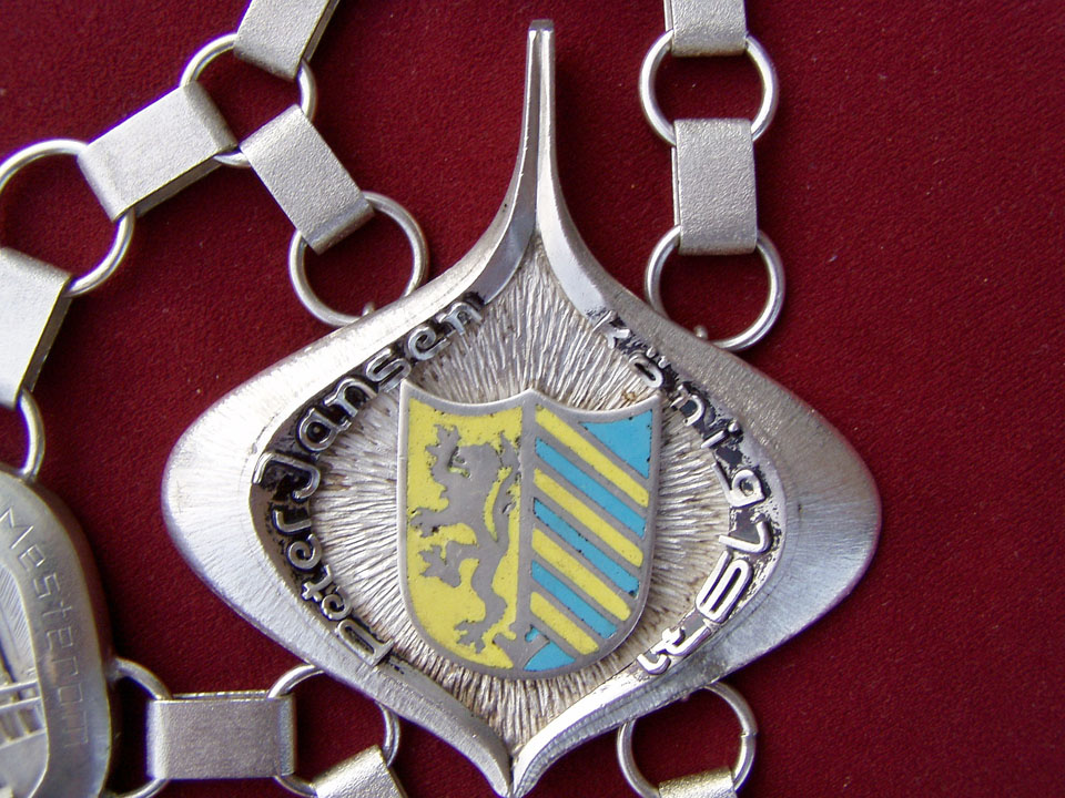 Den Reigen der neuen moderneren Königssilber eröffnete Schützenkönig Peter Jansen im Jahre 1971. Eingearbeitet ist diese Plakette in das Wappen der ehemals selbständigen Gemeinde Brüggen. Die Motivwahl dürfte seiner Zeit von zwei Faktoren bestimmt worden zu sein: